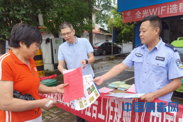 图为工作人员向群众发放禁毒宣传资料。中国禁毒网发