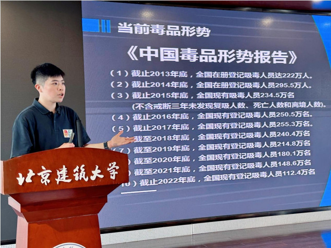 首都高校青春红丝带社团工作领导小组办公室全民禁毒宣传月期间,积极走进北京建筑大学、北京交通运输职业学院、中国人民公安大学等14所高校开展禁毒防艾讲座14场,2640人。