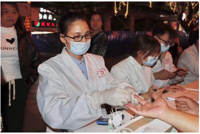 医务志愿者以活动为契,开展艾滋扩大检测工作。